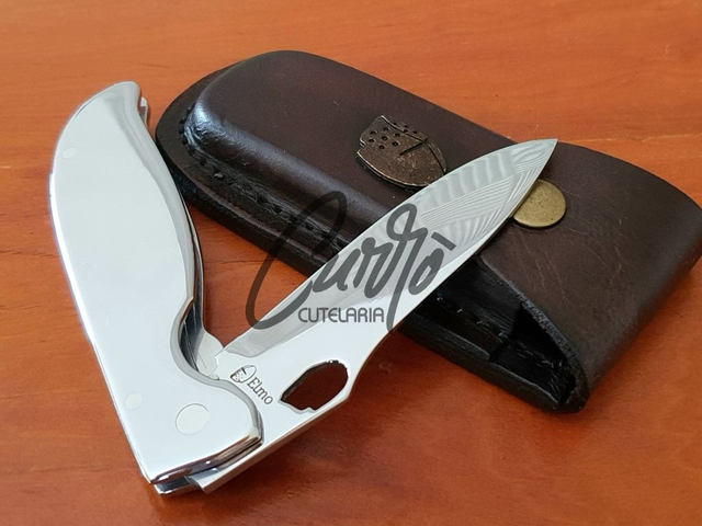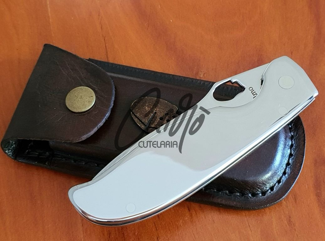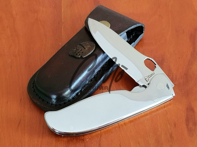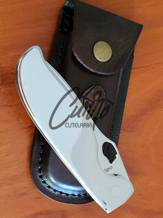Canivete Elmo Original Aço Inox Espelhado com Bainha em Couro