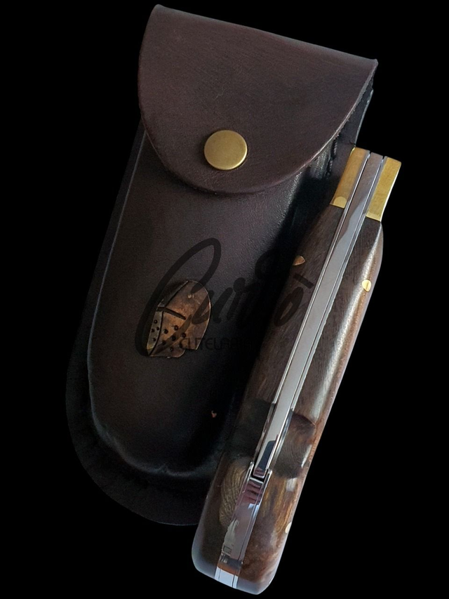 O Canivete Sorocaba Elmo é uma peça robusta e versátil, ideal para quem busca durabilidade e alto desempenho. Sua lâmina em aço inox de 4mm oferece resistência e excelente capacidade de corte. O cabo em madeira nobre garante uma pegada firme e confortável, enquanto a guarda em latão adiciona um toque clássico ao design.