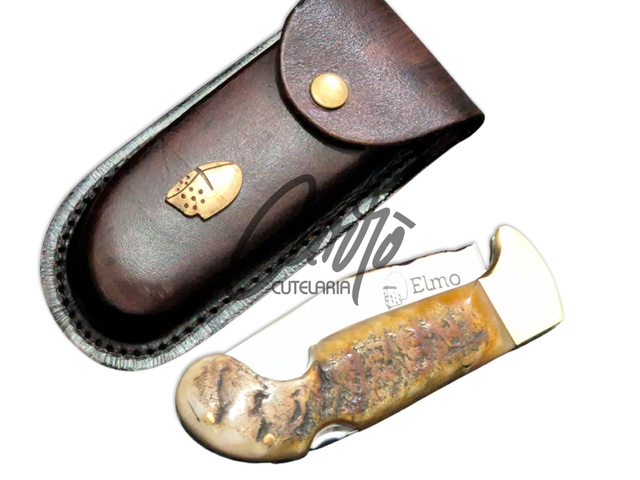 Canivete Sorocaba Elmo | Cabo em Chifre de Carneiro Merino + Bainha de Couro