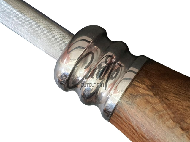 A Chaira Especial é essencial para manter suas facas afiadas e prontas para o uso. Com haste estriada de aço temperado, proporciona um realinhamento eficiente do fio, garantindo cortes precisos e prolongando a vida útil das lâminas. Seu cabo em madeira de lei oferece empunhadura confortável, enquanto os detalhes em alumínio agregam sofisticação e durabilidade.