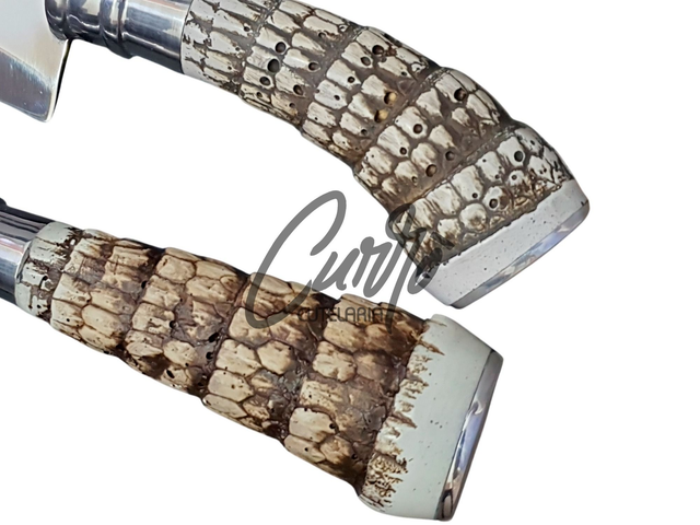 Conjunto BBQ Faca Chaira Elmo Cabo Resina Tipo Rabo Tatu 9"