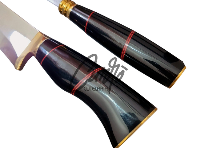 ✔ Faca e chaira em aço inox alemão de alta resistência