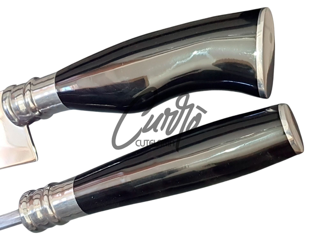 Conjunto Churrasco Faca Chaira Elmo Cabo Resina Tipo Chifre 9"