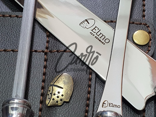 Conjunto Faca Chaira Garfo Elmo Cabo Resina Tipo Chifre 8 Pol