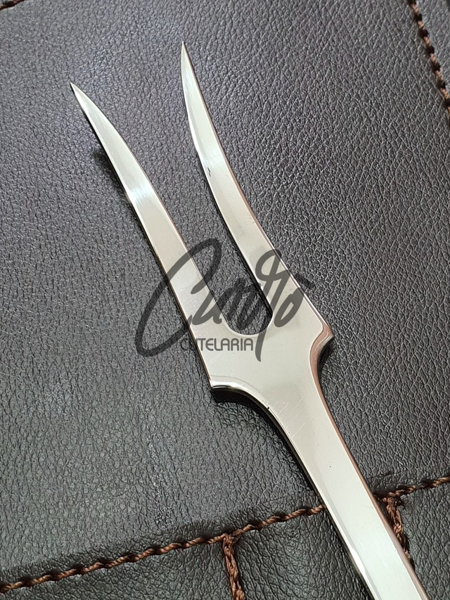 Faca em aço inox 420C | Chaira em aço cromo vanádio | Garfo trinchante em aço inox