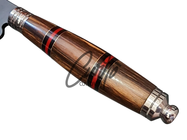 A Adaga Gaúcha Elmo Javalizeira é ideal para quem busca resistência e desempenho superior. Feita artesanalmente em aço carbono 1070, oferece excelente retenção de fio e poder de corte. Seu cabo em materiais naturais torna cada peça única, com variações de tom e textura. A lâmina recebe uma pintura protetiva contra oxidação.