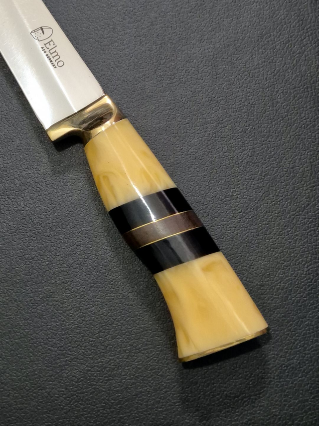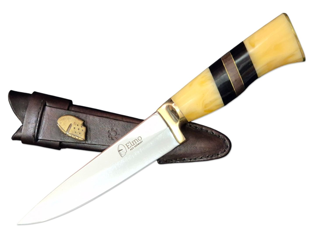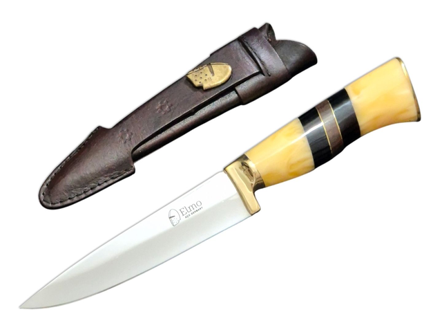 A Faca Artesanal Elmo une tradição e sofisticação em um design robusto. Sua lâmina garante cortes precisos e alta durabilidade, enquanto o cabo, com detalhes refinados, proporciona conforto e elegância.