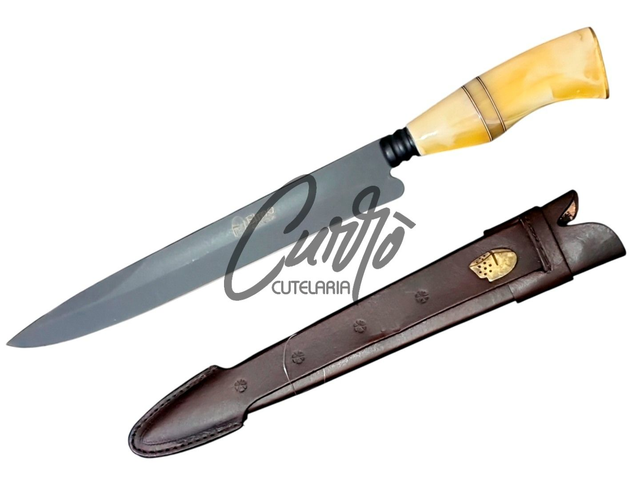 Robusta e versátil, a Faca Campeira Elmo é ideal para uso no campo, churrasco e colecionadores. Sua lâmina em aço carbono de alta qualidade garante cortes precisos, enquanto o acabamento negro oferece proteção contra oxidação e um visual marcante. O cabo em diferentes materiais proporciona conforto e segurança na empunhadura.
