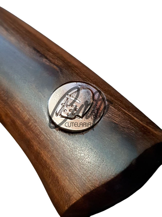 Faca Campeira Elmo Aço Inox Alemão Cabo Madeira de Lei 11 Pol