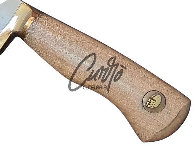 A Faca Churrasco Elmo oferece precisão e sofisticação para o churrasqueiro. Com lâmina em aço inox alemão de 3mm, proporciona cortes duráveis e eficientes. O cabo em madeira nobre oferece conforto e firmeza no manuseio, e a guarda em latão traz um toque de elegância.