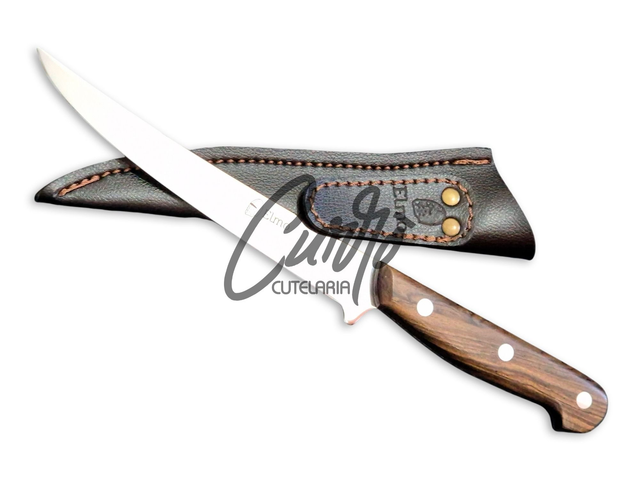 Faca Fileteira Elmo Aço Inox Madeira De Lei 7 Pol Bainha