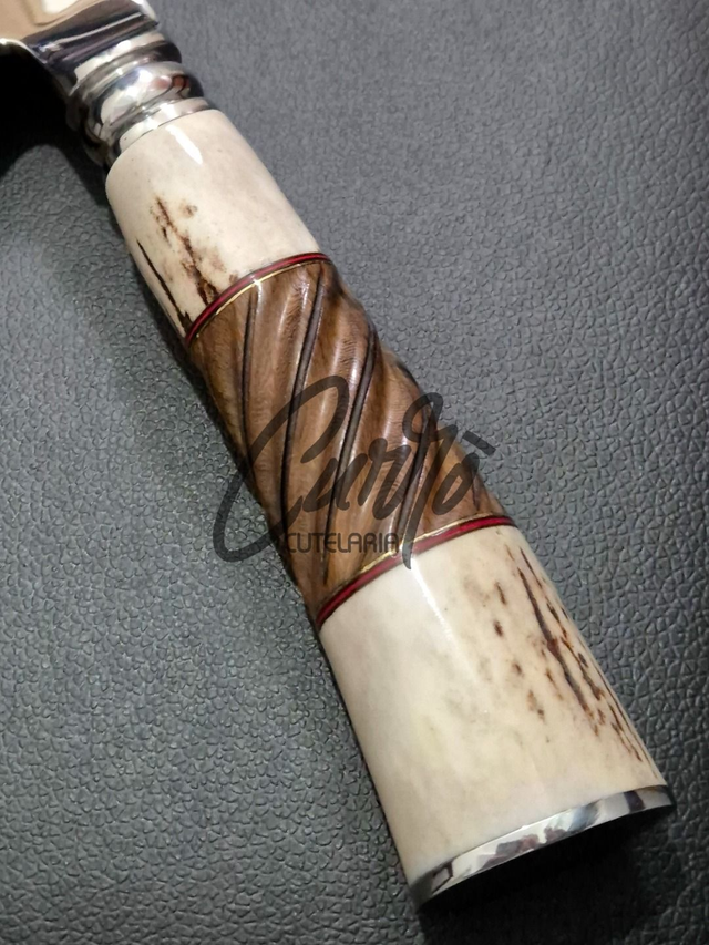 ✔ Cabo em madeira nobre, latão e resina – cada peça é única