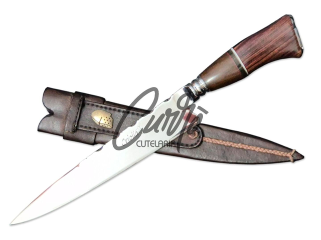Lâmina forjada em aço inox alemão com acabamento artesanal e corte preciso. Ideal para quem exige robustez e estética diferenciada. Acompanha bainha em couro legítimo.