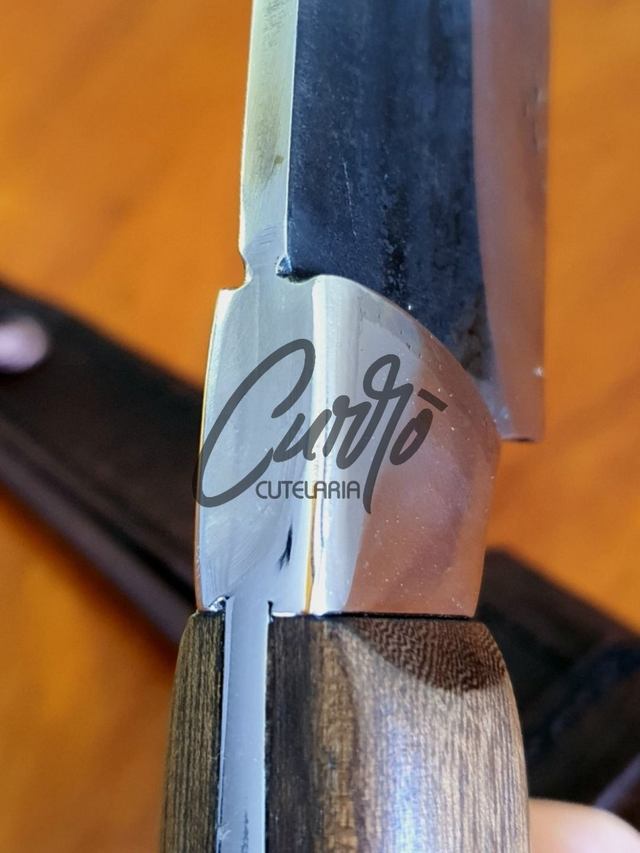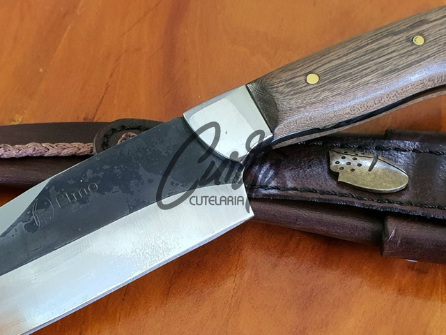 A Faca General Elmo, com lâmina de 8 polegadas e 4mm de espessura, é ideal para churrascos e atividades ao ar livre. Fabricada em aço inox fulltang, oferece durabilidade, precisão e resistência. O cabo em madeira nobre com pinos dourados e o acabamento brut forge garantem estilo e robustez. Acompanha bainha em couro legítimo para proteção e transporte.
