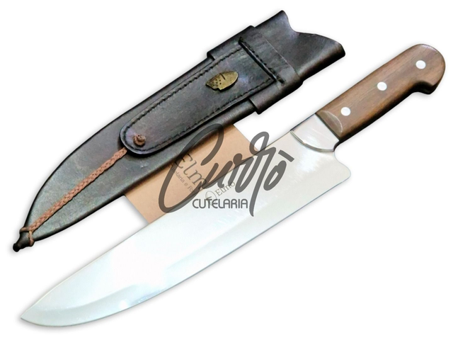 Faca Picanheira Elmo Aço Inox Madeira Nobre 10 Pol Bainha