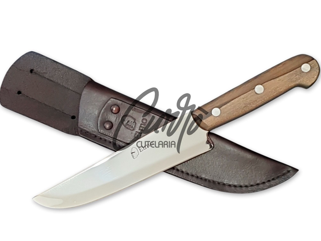 A Faca Utilitária Elmo é ideal para diversas atividades, da cozinha ao uso externo. Sua lâmina em aço inox de 2mm garante cortes precisos e alta durabilidade. O cabo full tang em madeira de lei proporciona pegada firme e segura. Acompanha bainha em couro legítimo para proteção e praticidade.