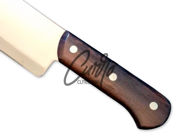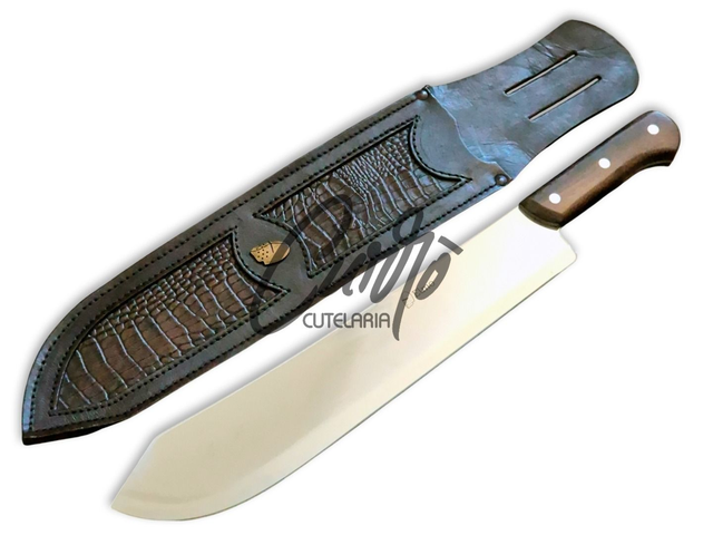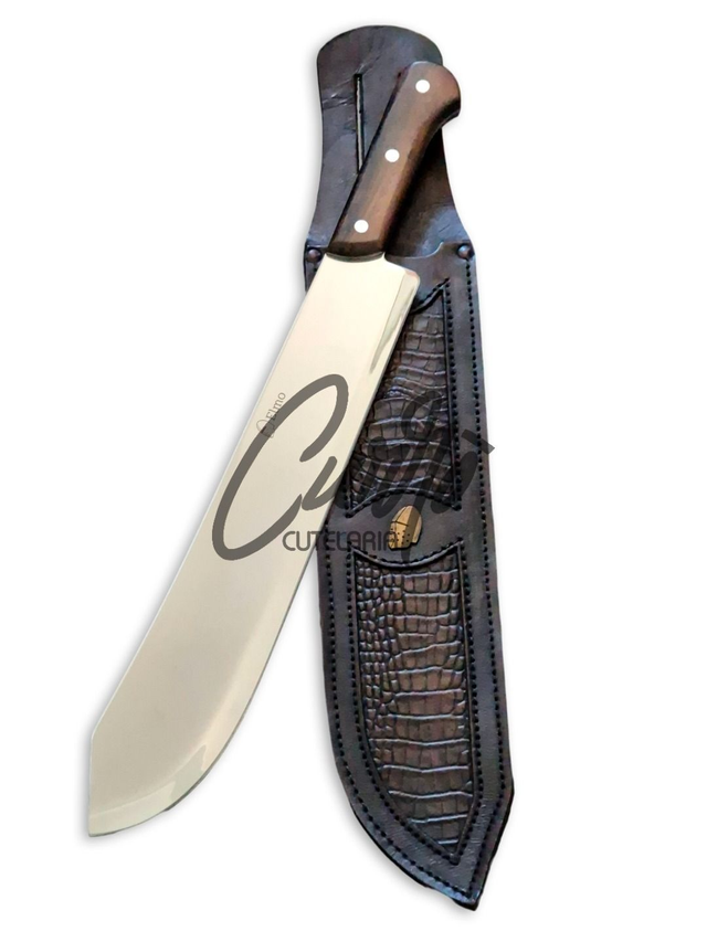 Facão Elmo Aço Inox Cabo Madeira Nobre 14 Pol Com Bainha
