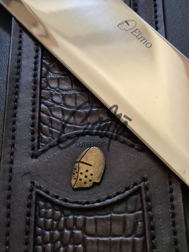 O Facão Elmo é uma ferramenta robusta e versátil, ideal para camping, trilhas, corte de vegetação e churrasco. Com lâmina de 35cm em aço inox, oferece alta resistência à corrosão e cortes precisos. Sua espessura de 3mm equilibra resistência e leveza, proporcionando conforto no manuseio prolongado. Acompanha bainha em couro legítimo para proteção e transporte seguro.